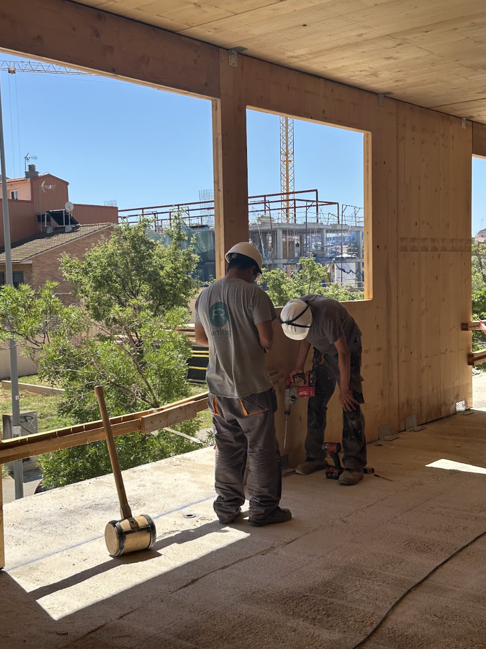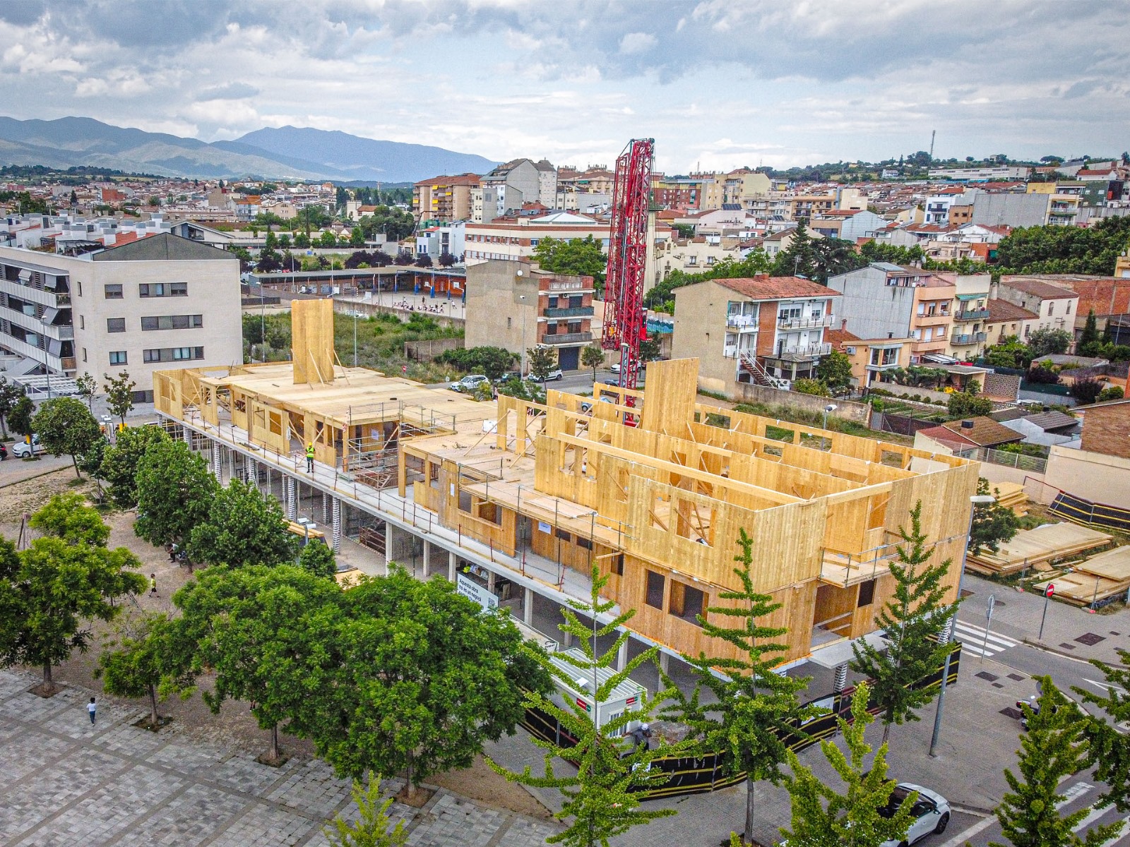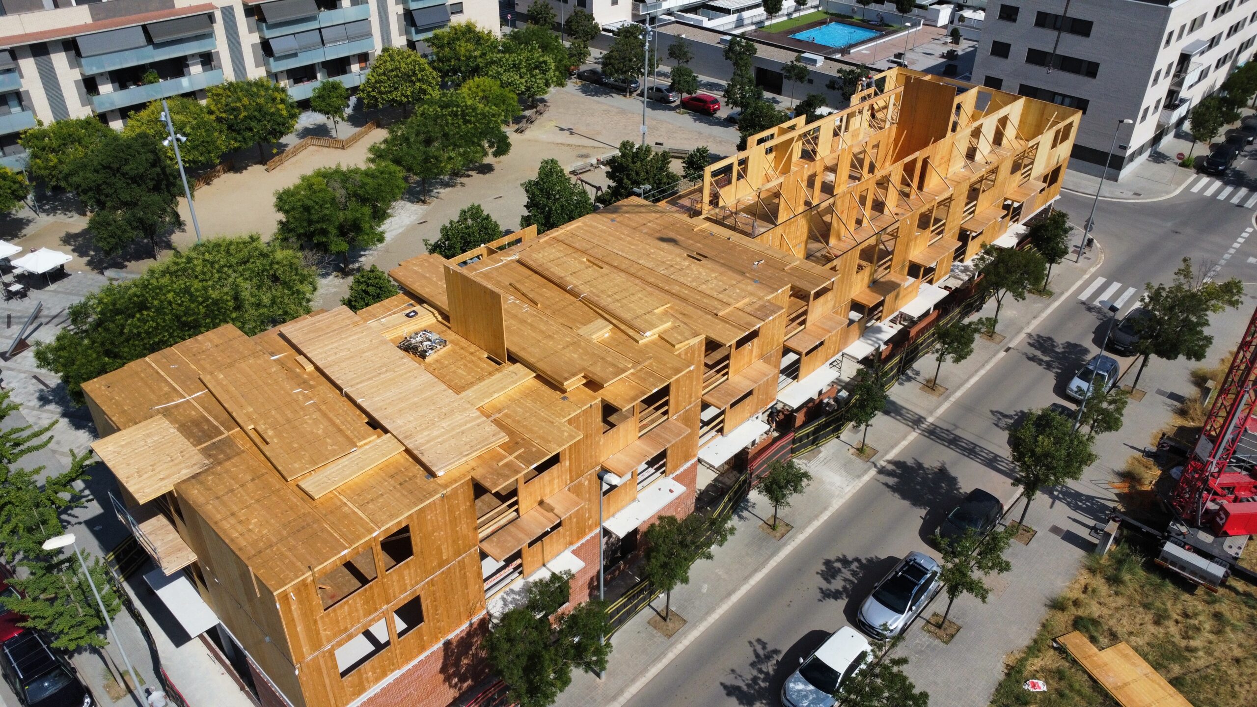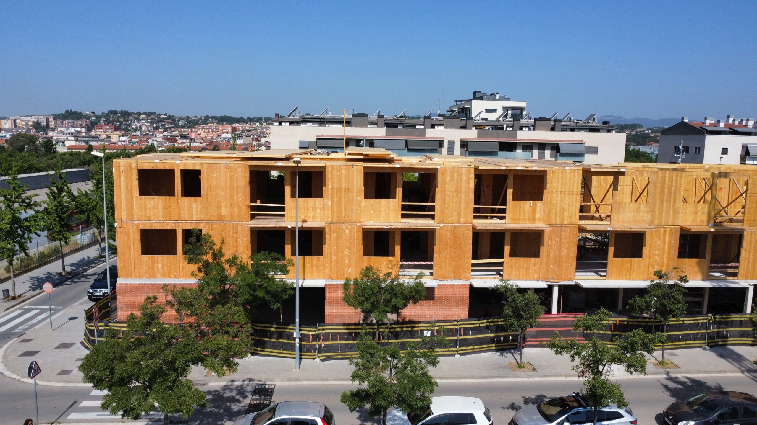 A El Cairó (Granollers) estem finalitzant la tercera planta d’un edifici de 29 habitatges, executat amb estructura de fusta contralaminada (CLT).